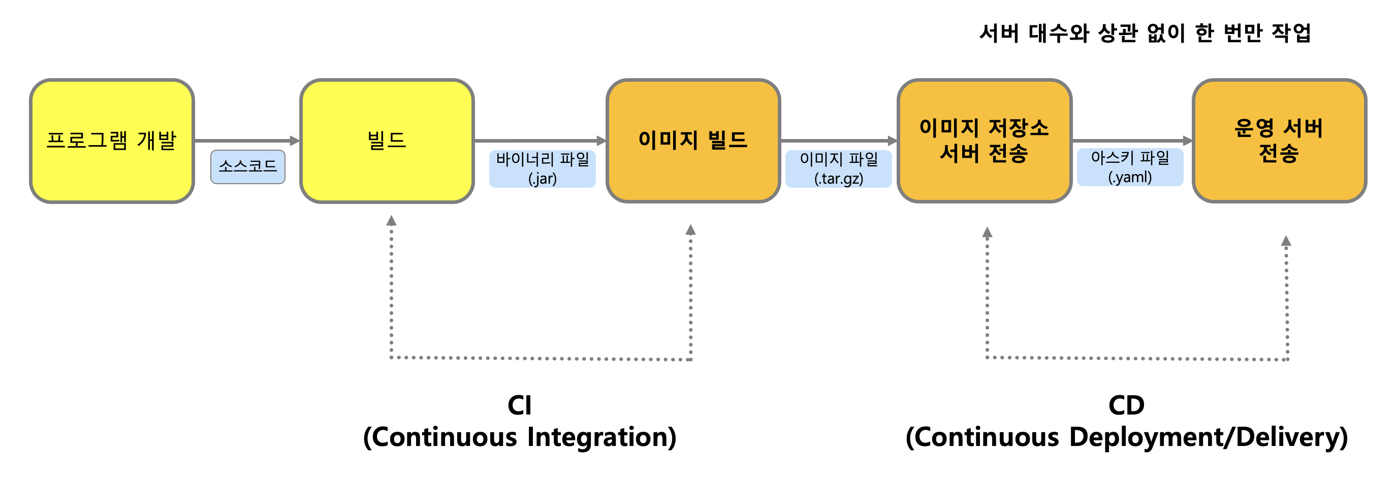 앞서 간단히 살펴본 개발/배포 프로세스를 다시 살펴보자.