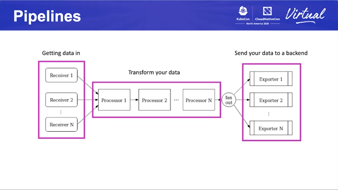 데이터 수집 -> 변경 -> 보내기 형태의 pipeline 구조로 구성됩니다.